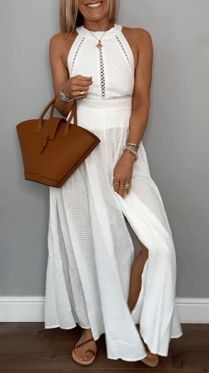 Women's Round Neck Sleeveless Hollow Back Tie Holiday Dress